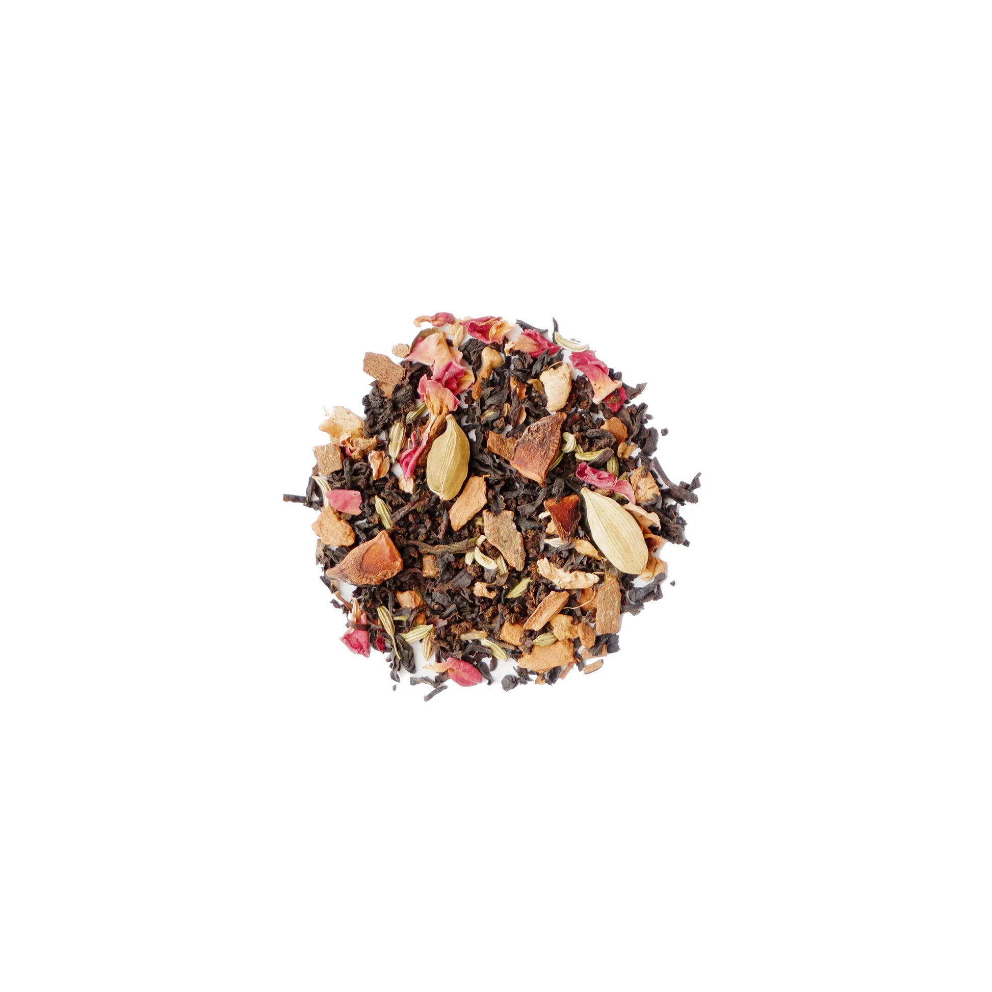 Black Tea, Cardamom, Cinnamon, Ginger, Fennel, Cloves, Star Anise, Black Pepper, Tulsi, Rose Petals